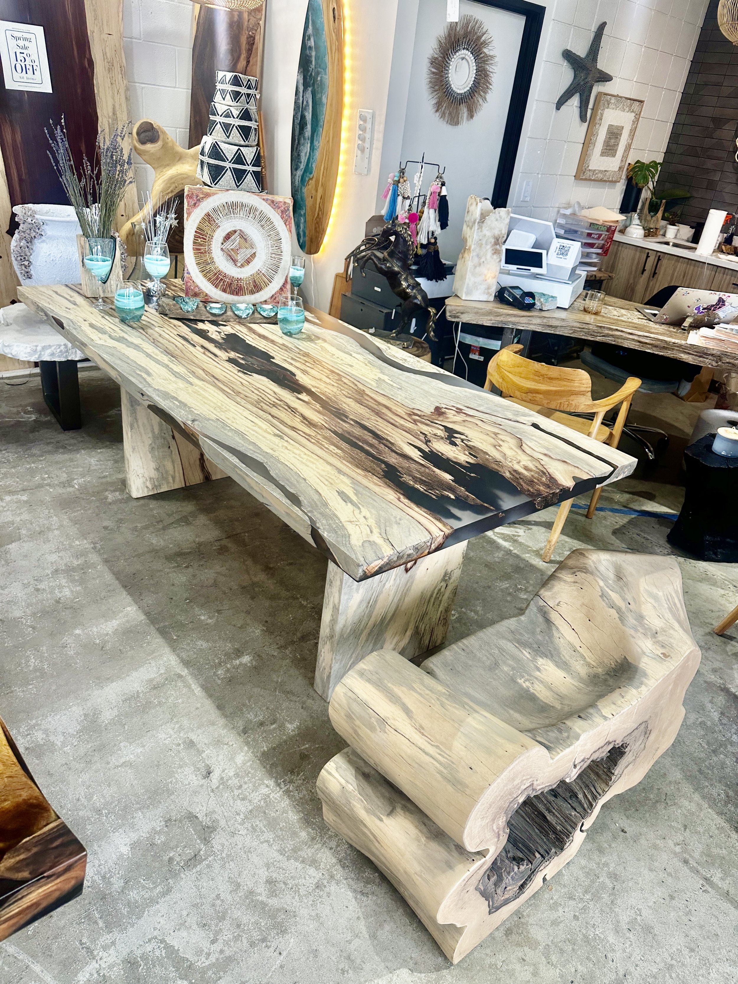 Experience the beauty of live edge tables firsthand at our showrooms in La Jolla and Solana Beach. Our team of skilled artisans is here to guide you through the process, ensuring you find or create the perfect piece for your home.