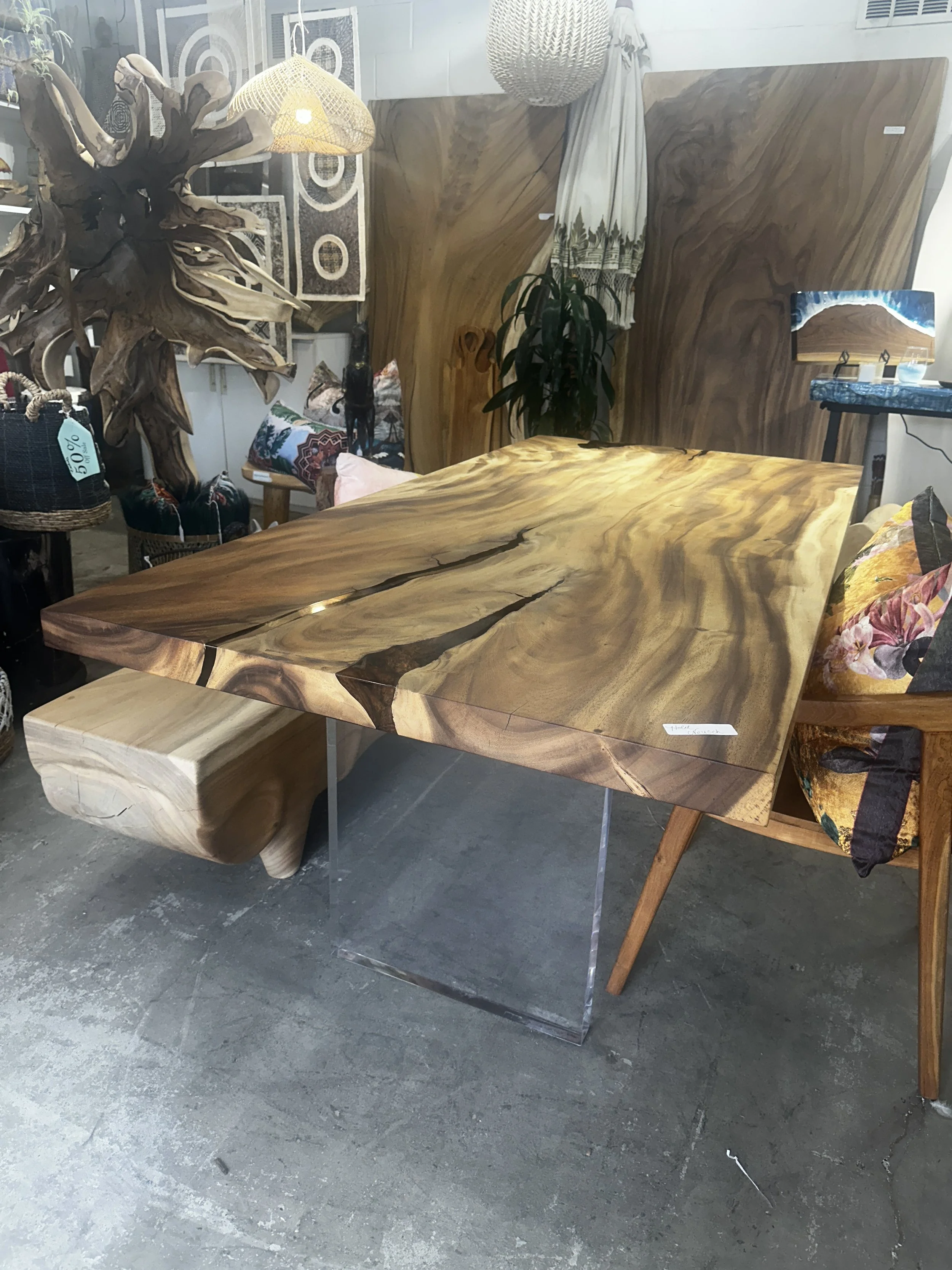 Custom-designed wood furniture allows you to tailor each detail to your style and space. From choosing the perfect slab to selecting the base design, finish, and size, you’re involved every step of the way. This ensures your table, bench, or desk fits your aesthetic—and your lifestyle—perfectly.