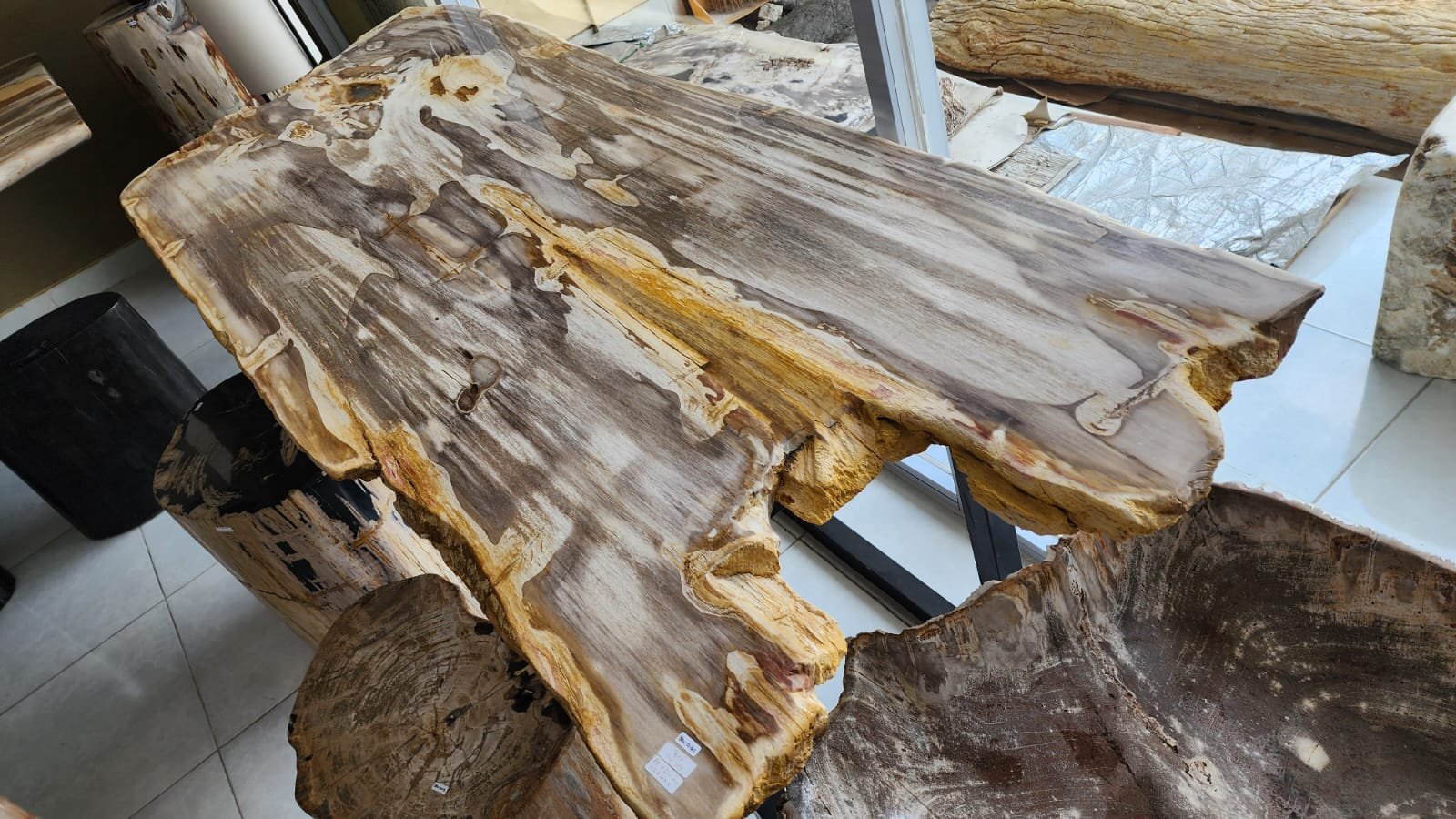 Petrified wood Tables, End tables, lamps, Stumps, decor, and plates